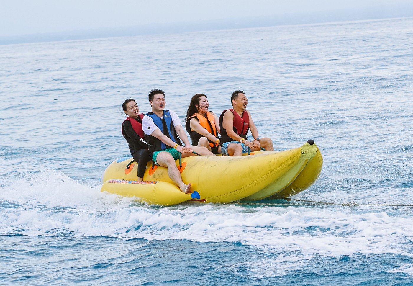 Feel the wind blow on your face as you get pull out by banana boat.